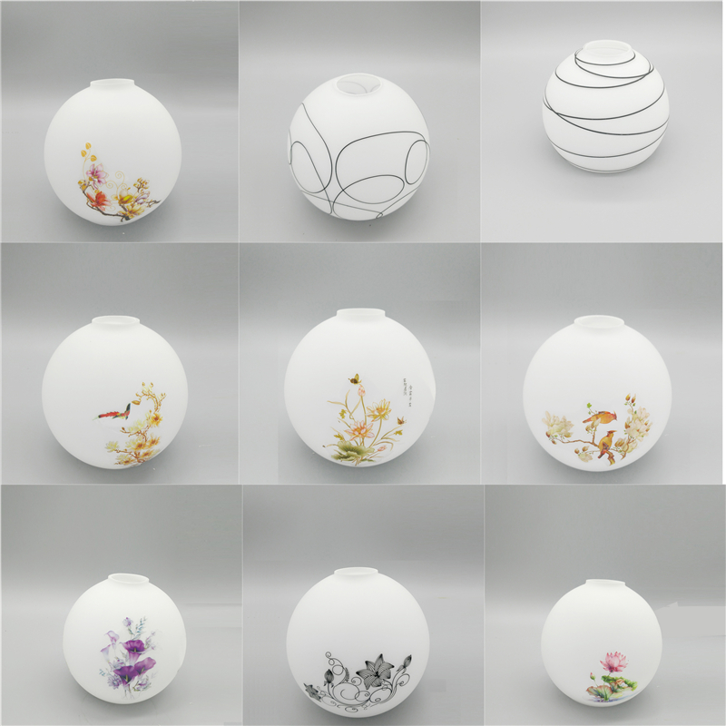 Glass lampshade shell Lamp accessories E27 lamp head milk white double opening decal lamp accessories Chandelier lampshade