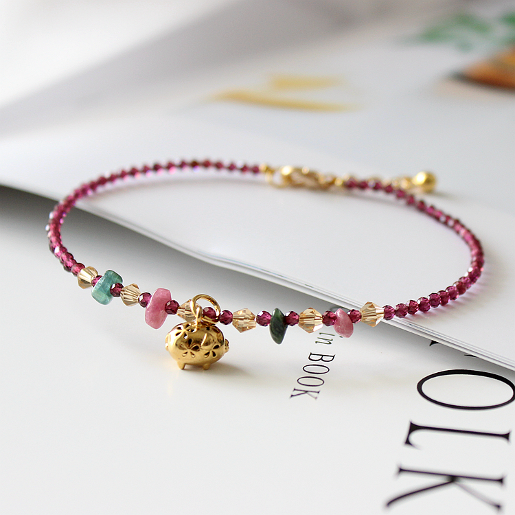 Beishi crushed stone with pomegranate stone, black manau beau, black rope purple sandalwood red rope purple sandalwood with colorful jade medullary 12 zodiac (raw Xiao optional) personality pomegranate stone Jade Stone-Seal Gravel Bell