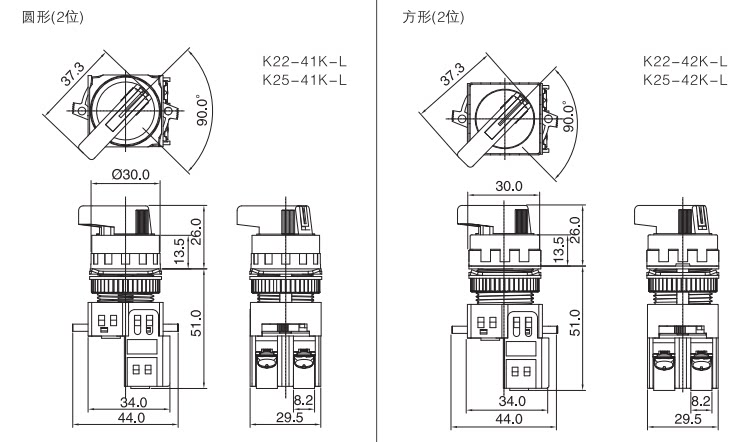 Korea Kaikun KACON selector switch K22-41K10 round two-stage short handle switch 2-speed import