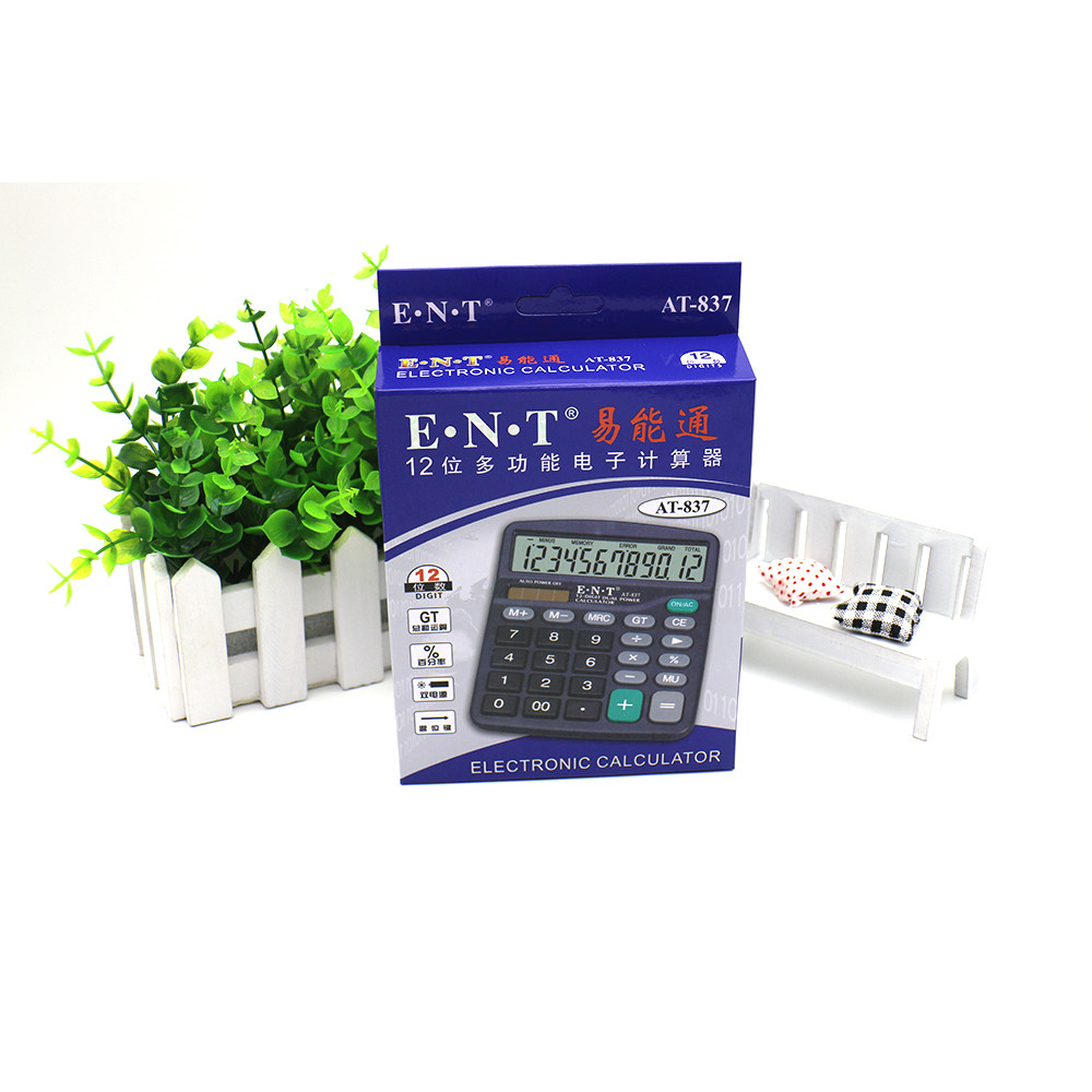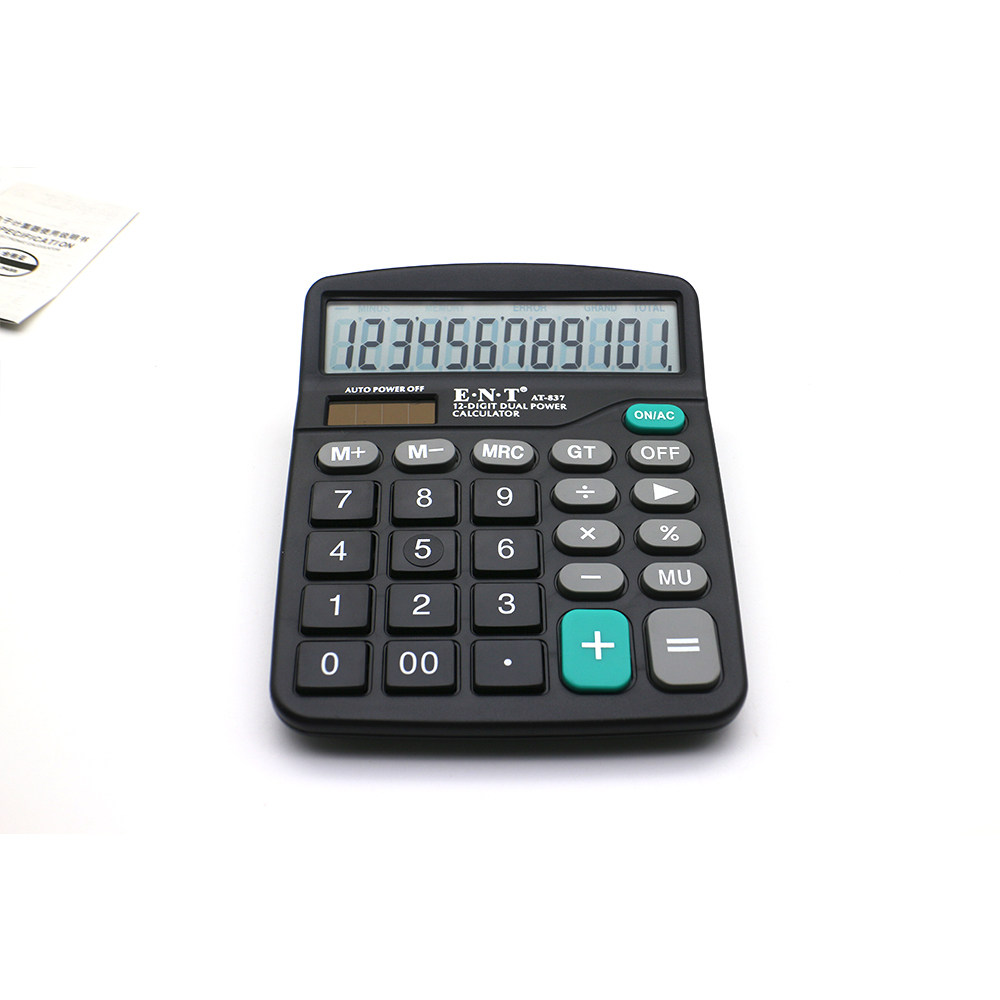 Easily accessible 837 Calculator Black Small Calculator 12-digit large screen Display Solar Dual Power