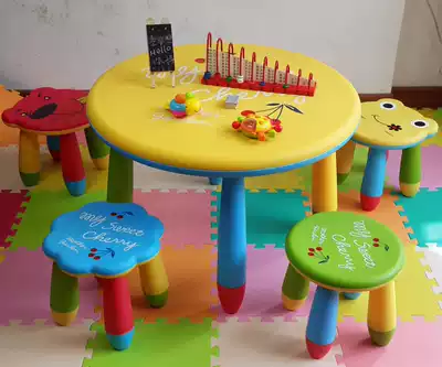 Solid color yellow round table 4 stool each color solid color red Round Table 4 stool each color Round Table (color can leave a note) small stool (color can leave a note) solid color blue Round Table 4 stool each color red