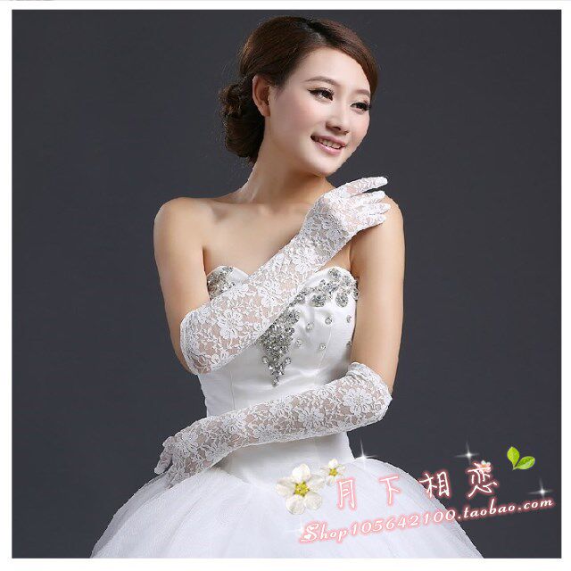 Promotion white long version of lace bride wedding full finger nail wedding gown wedding gown accessories glove month of love red