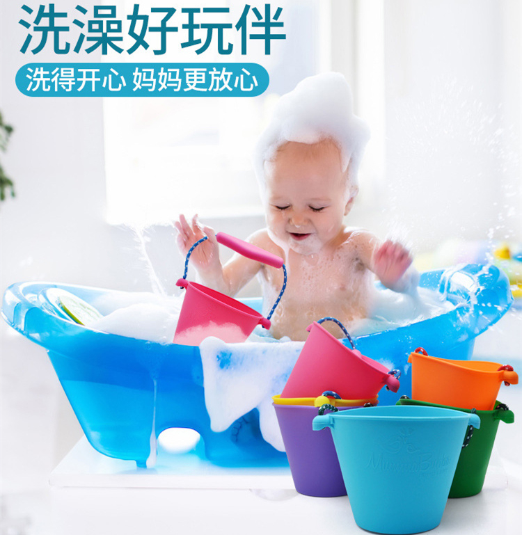 Foldable children's sand play water bucket Outdoor portable beach toy baby shower silicone bucket