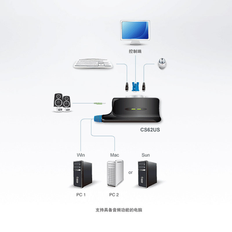 Aten Macro CS62US Keyboard Mouse 2 Port USBKVM Audio Multi Computer Shared VGA Hotkeys Switcher