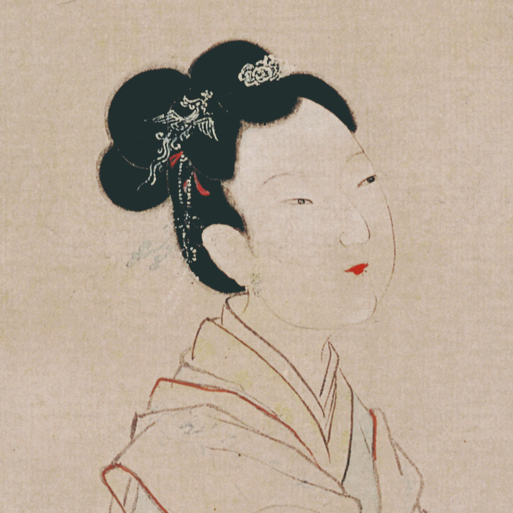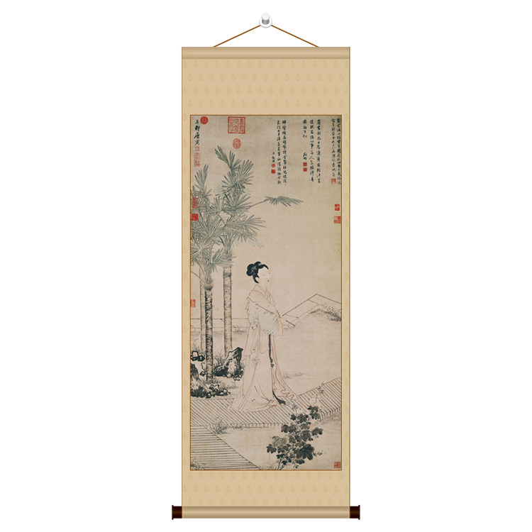 Banj Ensemble Fan fig. 6-ruler Canvas Strips vertical shaft imitated ancient waiter female figure softly framed calligraphy and painting Tang Yin