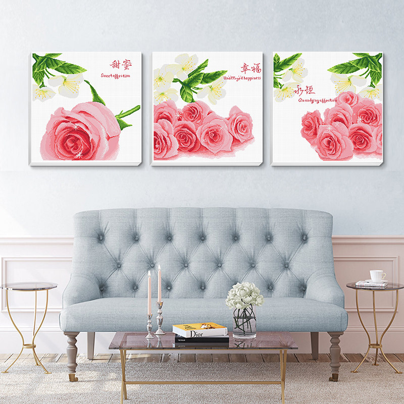 Cross stitch living room 2021 new thread embroidery small simple embroidery triptych small self-embroidery handmade bedroom embroidery