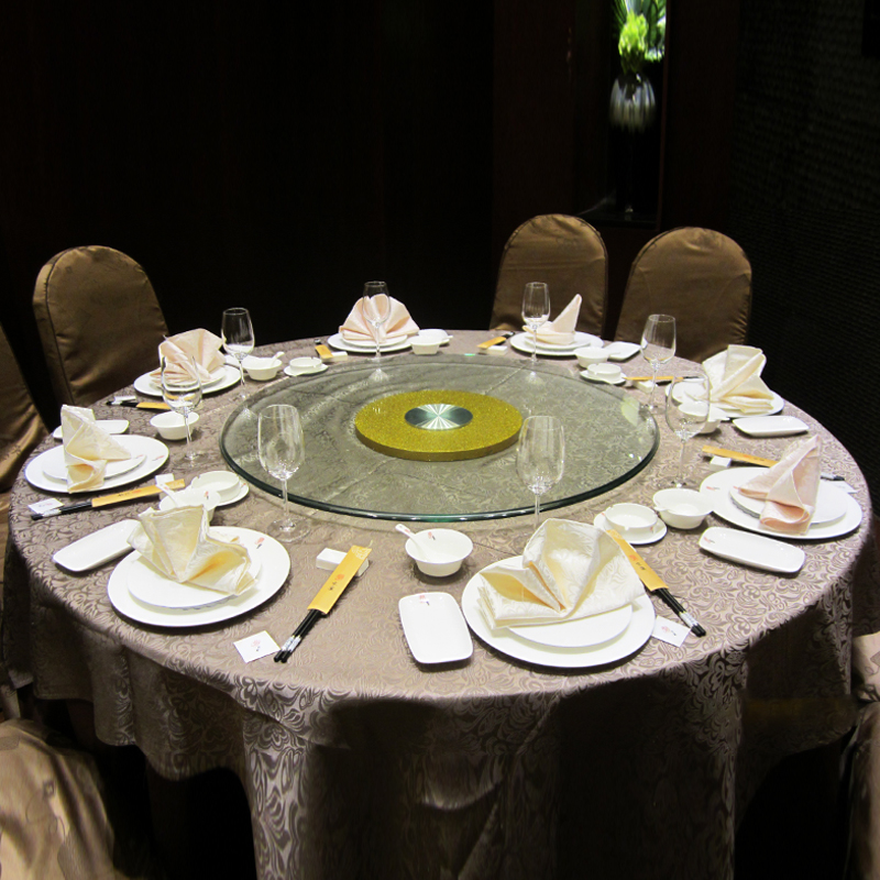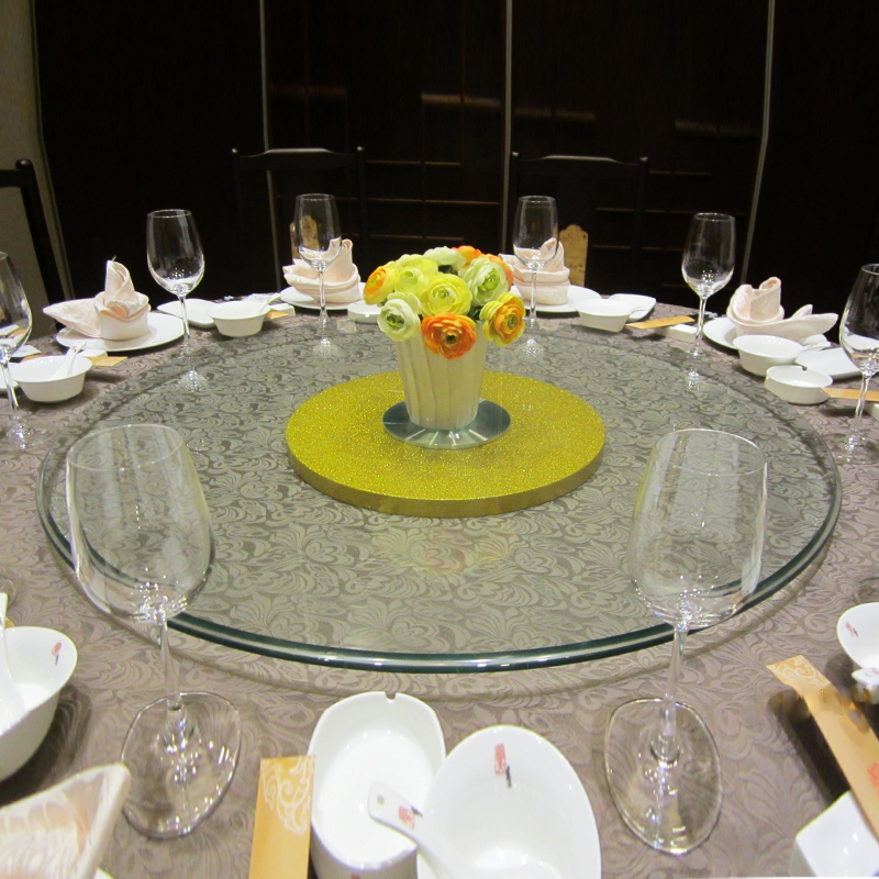 MA37 plastic steel flash gold round table turntable tempered glass turntable Jinsha base table round table solid wood turning table