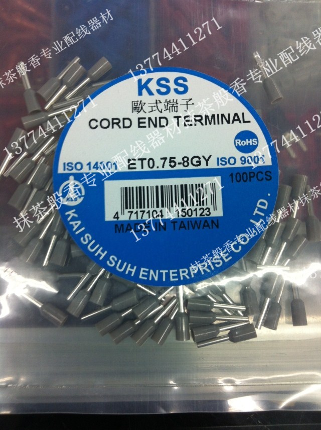 Taiwan KSS pin terminal European tube type terminal ET0 75-8gy BE WE gray blue white E7508