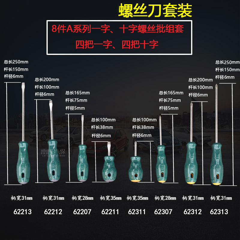 09306 8-piece set of cross 62302 PH0*75mm pole length word 62202 3 2*75mm pole length word 62213 6*1