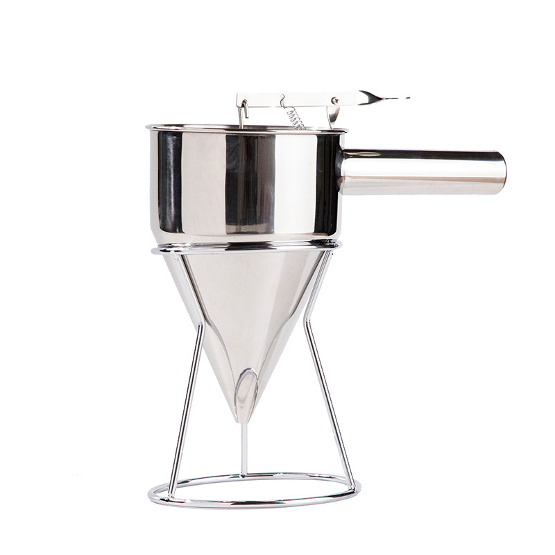 Stainless steel tapered funnel with frame octopus small pellet oil bucket with bracket syrup quantifier egg pastry