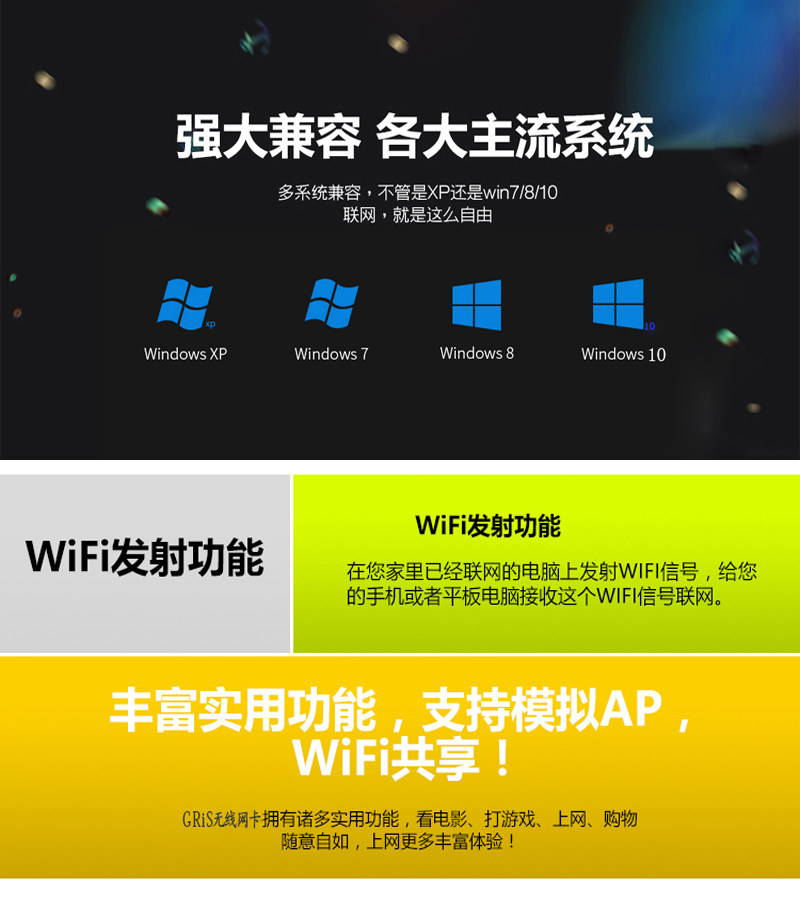 GRIS USB wireless network card RTL8188EUS desktop notebook WIFI transmitter receiver AP touch screen