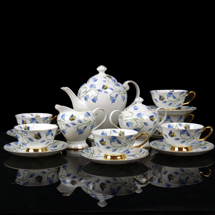 Six cups of camellia, six dishes, one pot, one sugar can, one milk cup, six cups, six dishes, one pot, one sugar can, one milk cup, phalaenopsis, six cups, six dishes, one pot, one sugar can, one milk cup, bluebell, six cups, six dishes, one pot, one sugar can, one milk cup