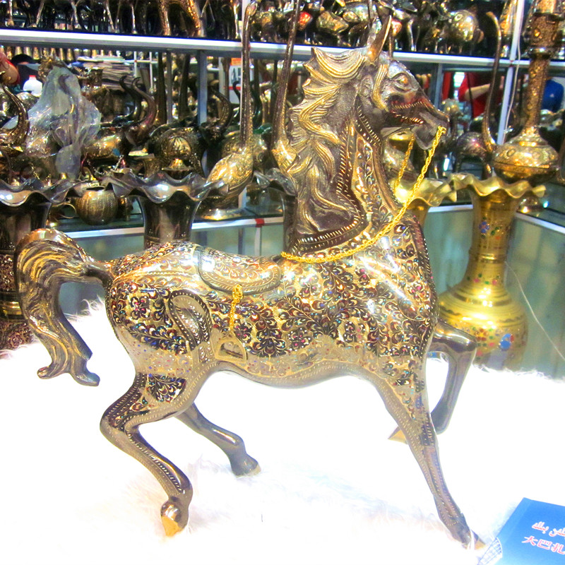 Pakistani traditional handicraft bronze carving colorful dots horses lead the horse to successful horse manufacturers