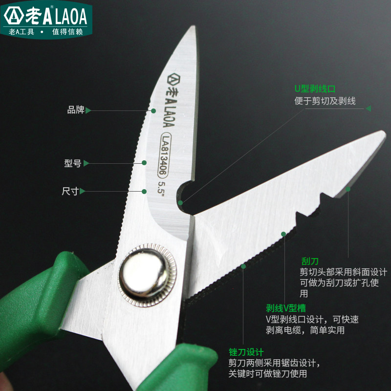 Old A tool Stainless steel multifunctional electrician scissors Cable shearing wire cutting knife Electrician knife LA813406