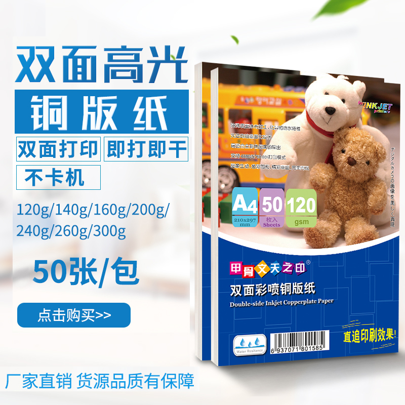 120g double-sided high-gloss coated A4*50 sheets 140g double-sided high-gloss coated A4*50 sheets 160g double-sided high-gloss coated A4*50 sheets 200g double-sided high-gloss coated A4