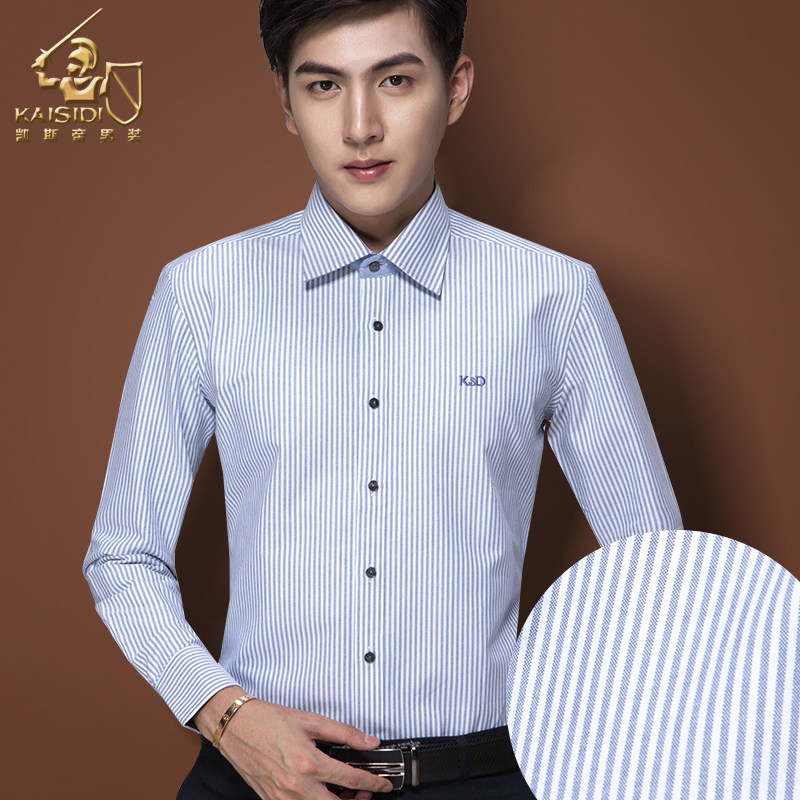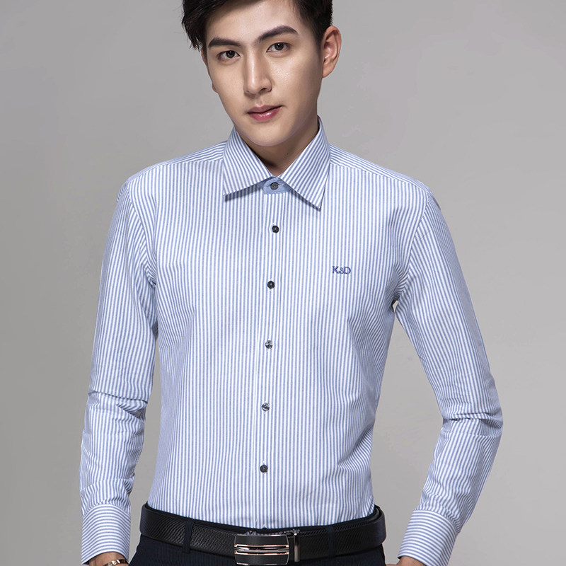 Men's Wear Long Sleeve Shirt Body Style Pure Cotton Oxford Spinning Shirt Men's Korean Version Business Stripe Clothes