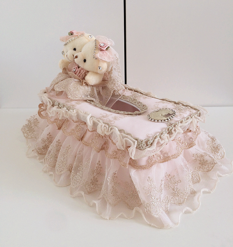 Lace tissue box set for car, home use, pastoral European style cute fabric bear restaurant tissue box