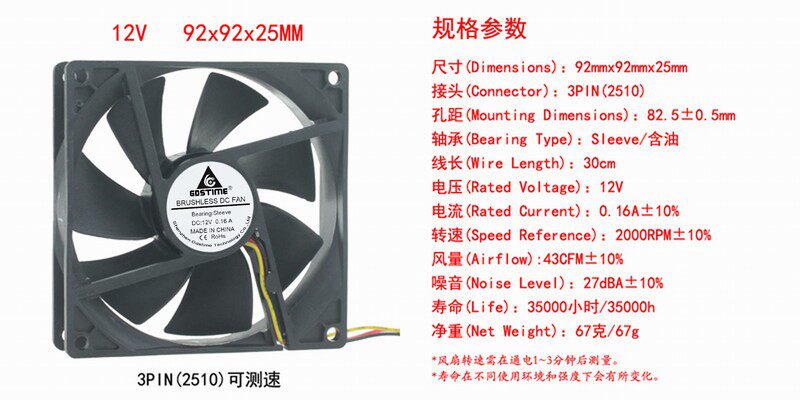 DC DC 5V 12V 24v 48v 48v 92X25 9 cm cm cm Refrigerator accessories Cooling fan