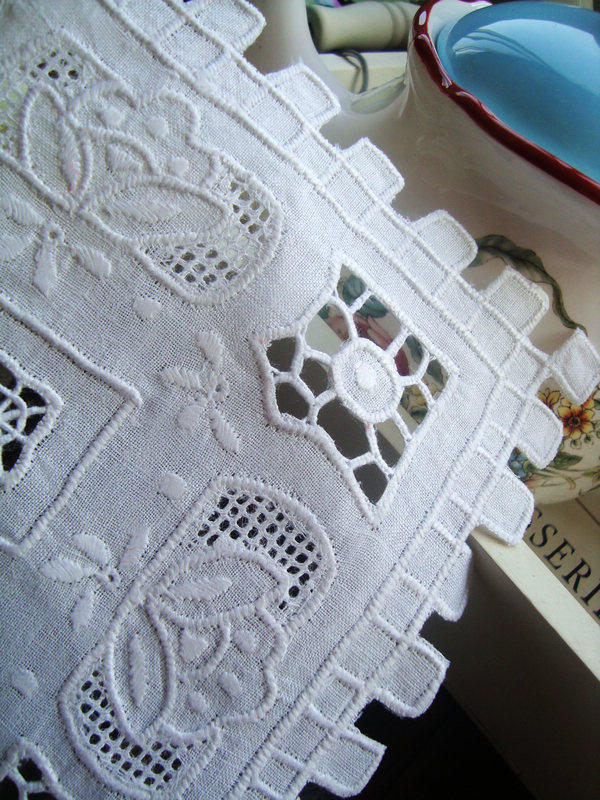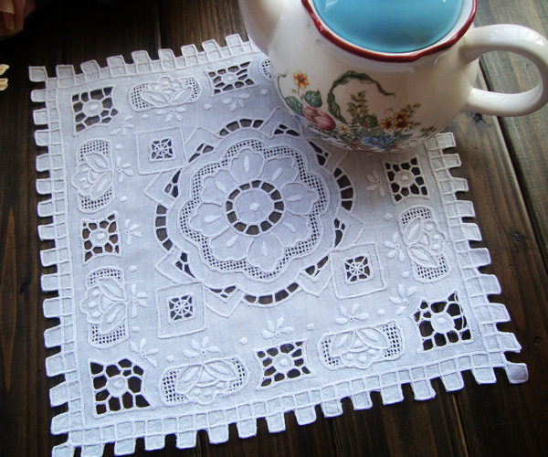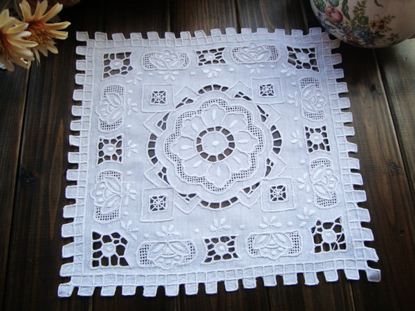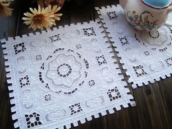 Hand embroidered lock edge drawn yarn white about 30CM square 1 piece