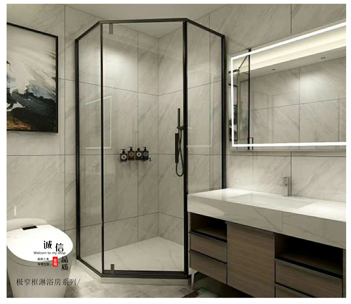 Frameless partition Diamond Shaped Shower Room Hotel Guesthouse Engineering Shower Room Tempered Glass Dry Wet Shower Screen