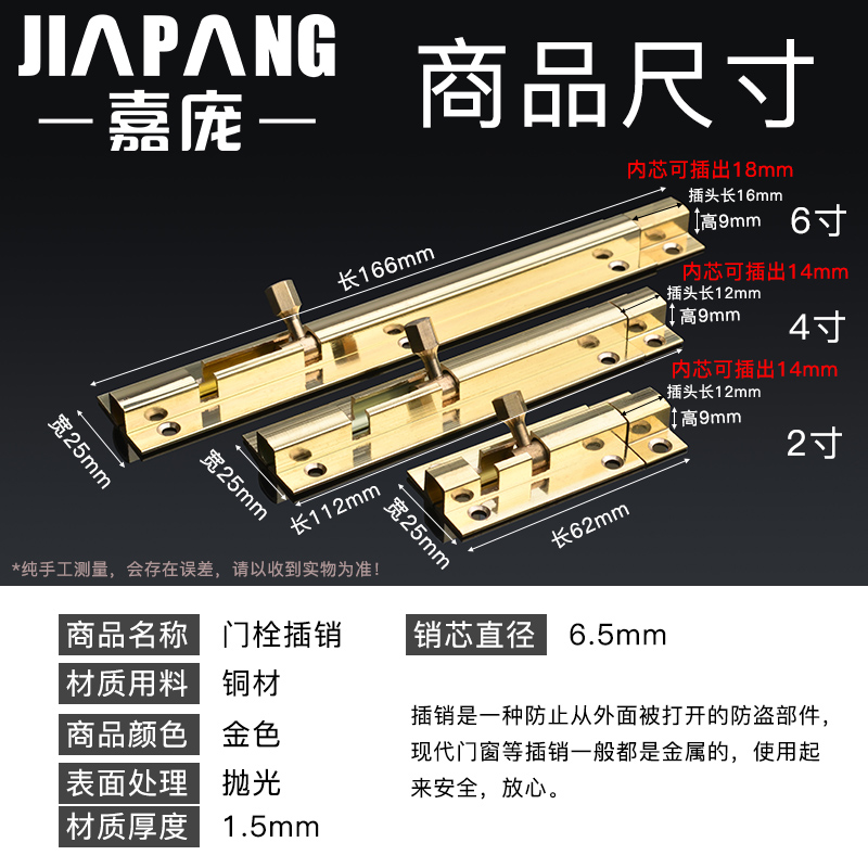 Jia Pang thickened brass latch door latch door latch anti-theft door latch latch thickened powder room wooden latch door