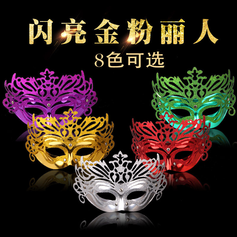 Halloween Plated Gold Powder Crown Prom Mask Makeup Party Gala Performance Walk Show Mask Women