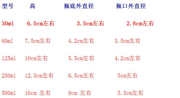 Transparent 30ml transparent 60ml transparent 125ml transparent 250ml 250ml 30ml brown 60ml brown 125ml brown 125ml