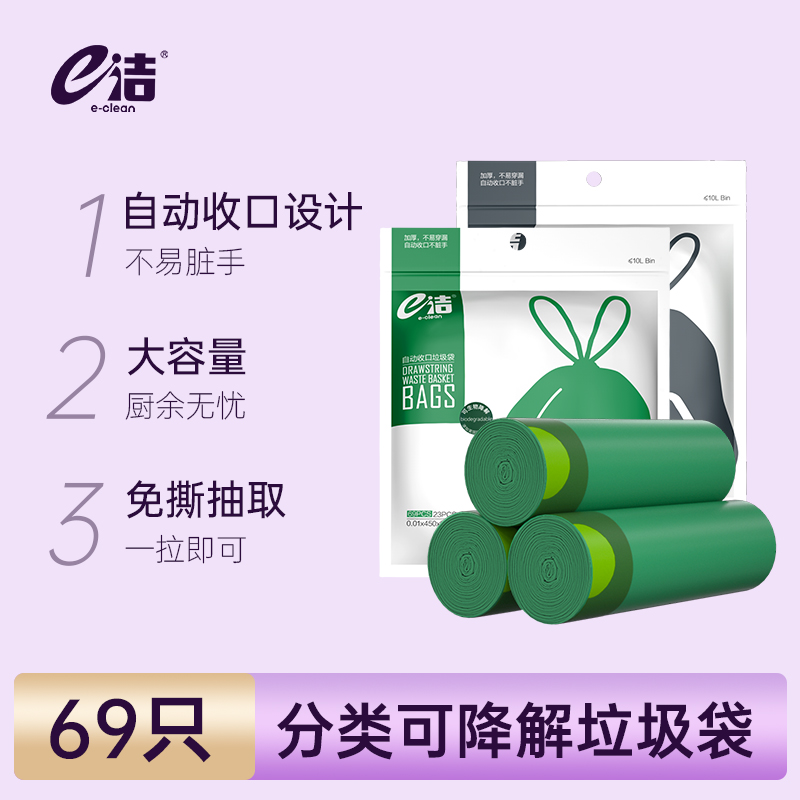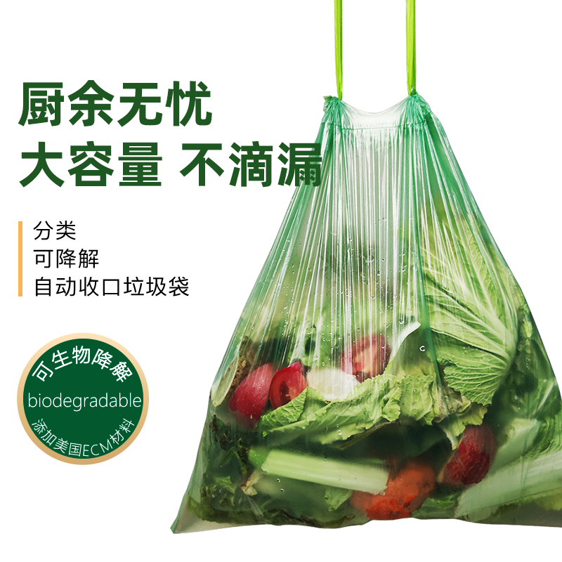 e-clean biodegradable garbage bag drawstring dry and wet garbage classification Plus size portable drawstring household plastic bag