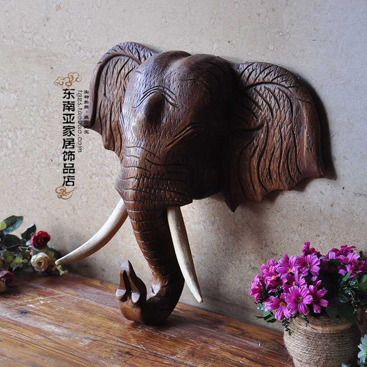 Thailand wood carving elephant head pendant home living room wall decoration elephant TV living room background wall decoration