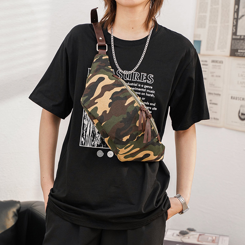 New Japanese dead fly diagonal backpack camouflage canvas trendy men's chest bag street European and American style messenger bag men's trendy bag