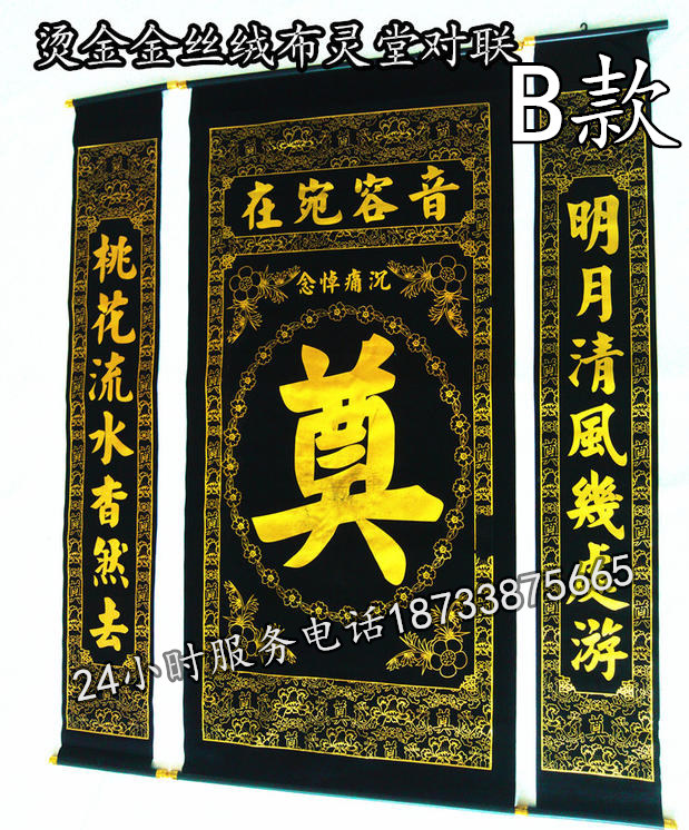 Washable Bronzing Hearingtang couplets with couplets of couplets Hanging Scrolls For Hanging Scrolls Bronzing gold word Funeral Supplies placement Lingtang