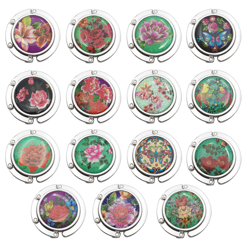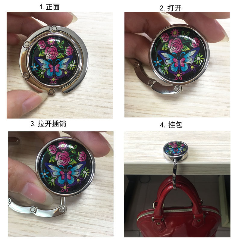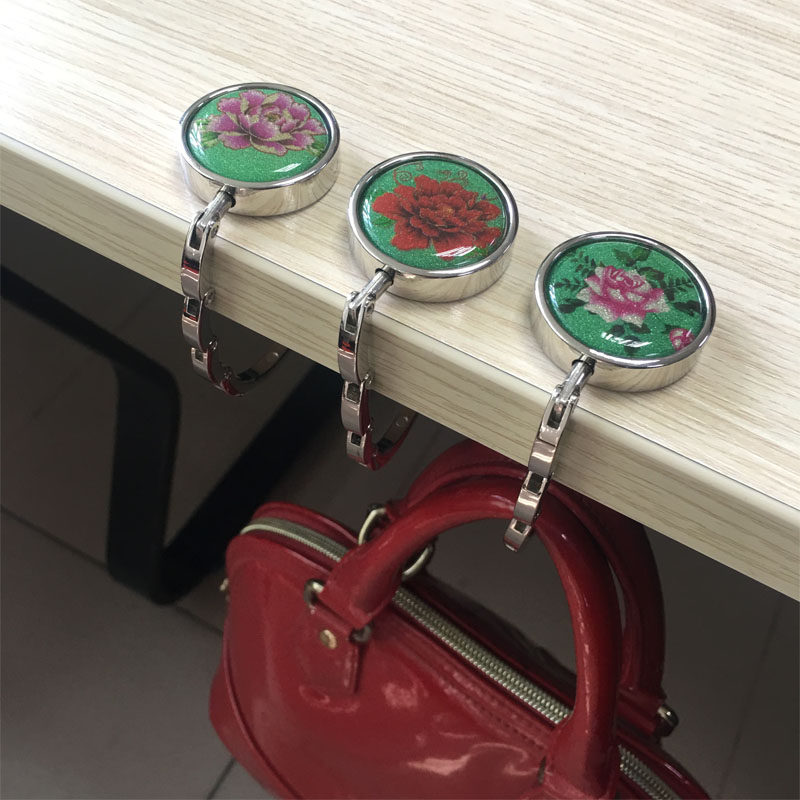 Creative round flash flower folding seamless bag hook zinc alloy desk removable hanging bag portable hanging bag hook
