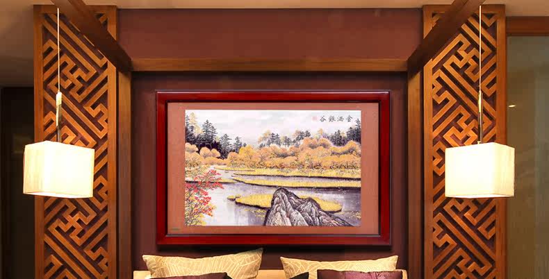 Solid wood carving Wood carving relief painting Chinese living room furniture with wood carving painting Sofa background decoration