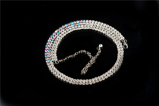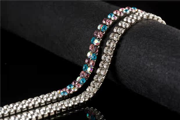 Single row of dense drilling green waist chain double-row with green waist chain 2 rows full white drill 2 rows of white diamonds pink 1 1 row of purple 1 row 1 white drill with 15 cm mixed colour pink 2-row