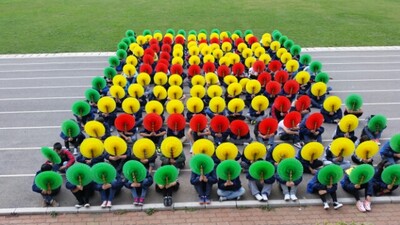 Hand flipping flower props Five-color hand flipping fan color-changing fan Dance supplies Large group exercise opening ceremony Children's Day decoration
