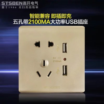 Four-way muffin STSBEN2100ma dual USB charging panel dual USB phone charging five-hole power outlet