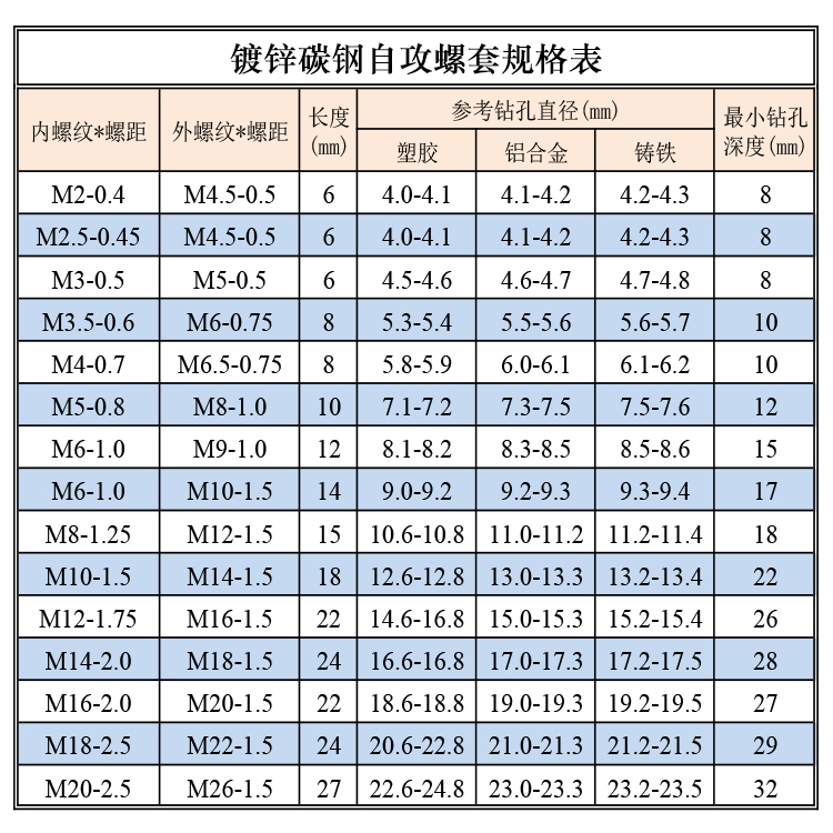 302 type galvanized self-tapping tooth sleeve self-tapping screw sleeve repair M2 M2 5 M3 M4 M5 M6 M8 M10