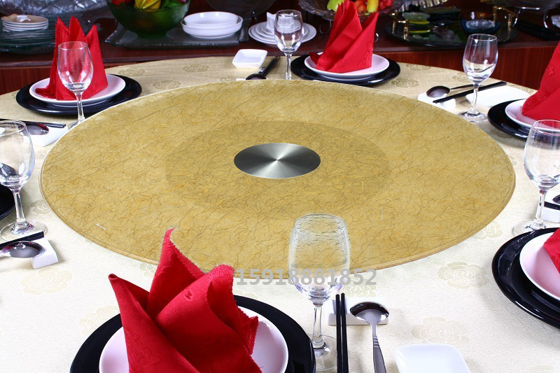 Warranty Manufacturer Direct Hotel Banquet Home Innate Dining Table Golden Creamy Pinch Silk Tempered Glass Turntable