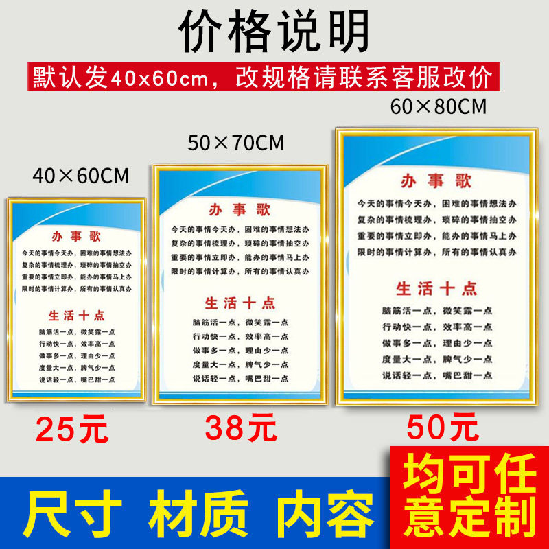 Work song Work ten points Factory system regulations wall chart Responsibility wall chart Corporate culture placard custom made