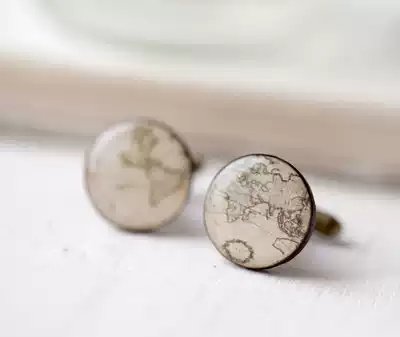 Ukraine Beautyspot original hand-made tour of European and American literature retro style World Map cufflinks spot