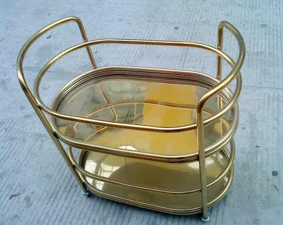 Stainless Steel Titanium Long Round Hotel Wine Cart European Service Trolley Mobile Snack Cart Mobile Beverage Cart