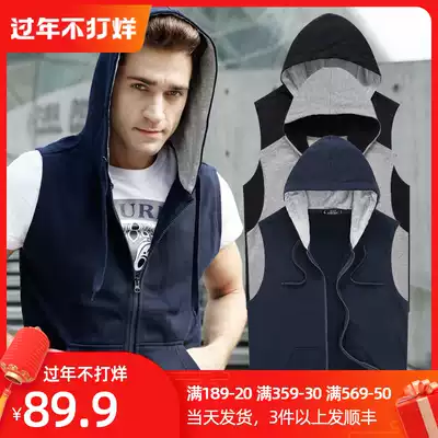 Sports vest men Spring and Autumn thin hooded large size outdoor running loose sleeveless vest men's horse clip vest coat