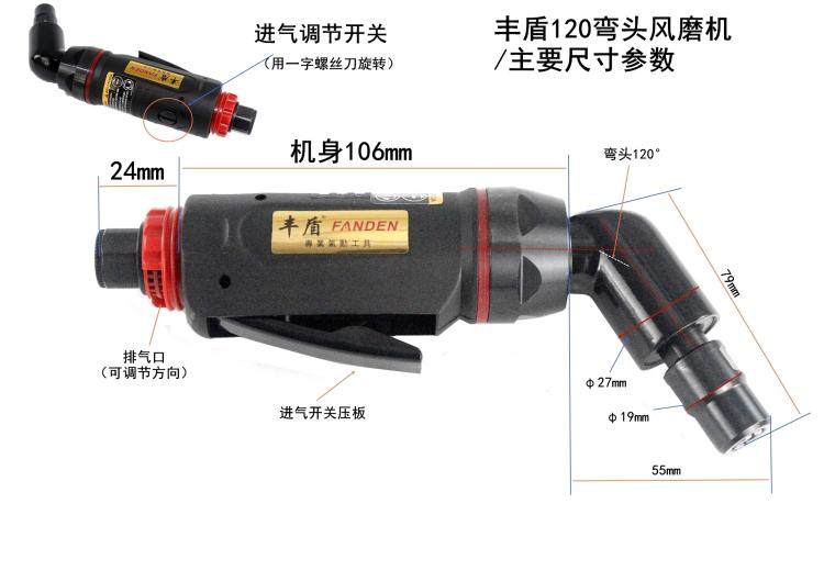 Fengdun 120-degree pneumatic engraving grinder Elbow wind mill 6mm pneumatic grinder grinding head polishing Corner air grinding
