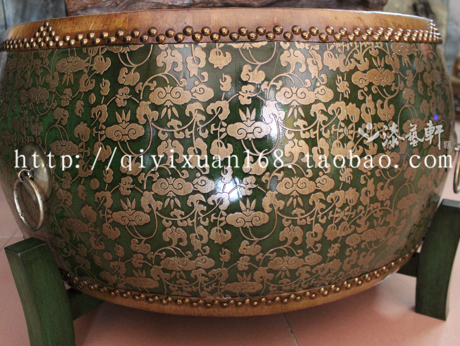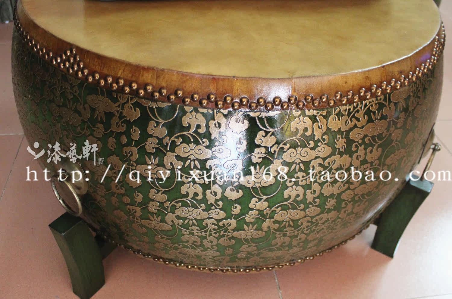 Modern Chinese neo-classical solid wood painted hand-painted furniture leather drum surface big drum coffee table tea table drum stool set