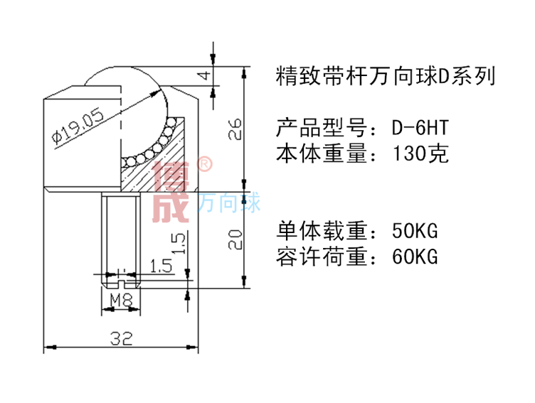 Bosei universal ball screw rod M8 D-6HT universal ball bull eye bearing transport ball bearing wheels can be made of stainless steel