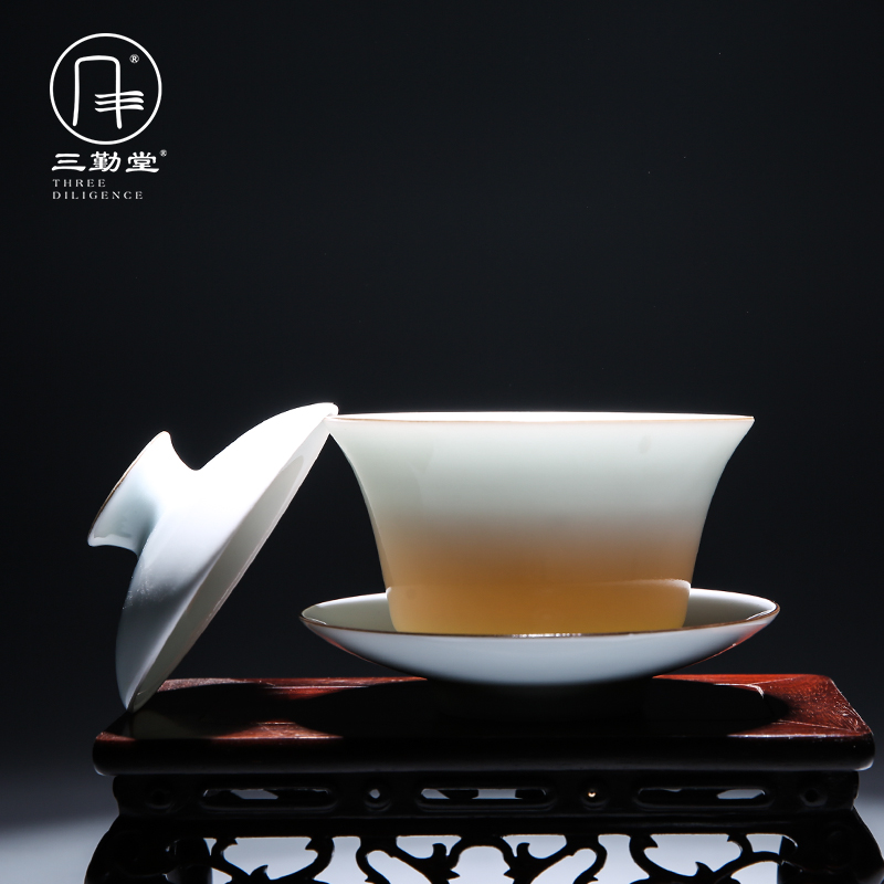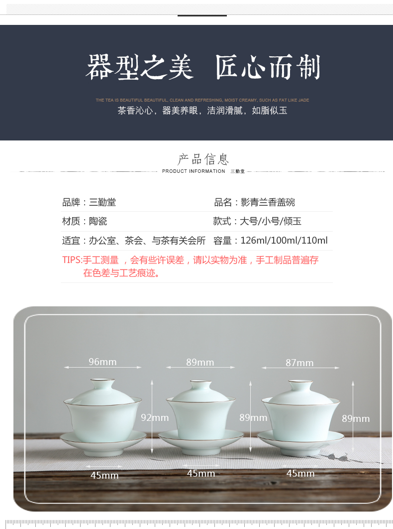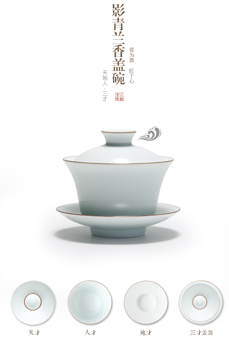 Sanqintang Gaiwan tea cup Jingdezhen Ceramic Gongfu tea Celadon small tea bowl three cups S11007