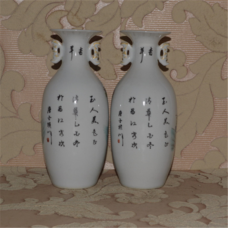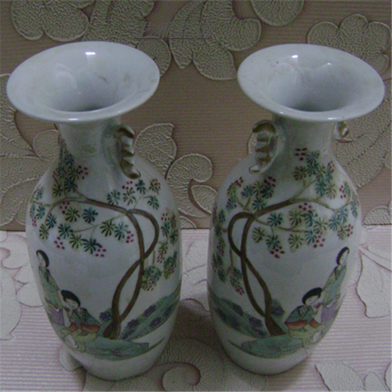 Republic Of China Pink waitresses Twin Ear Bottle Pair Antique Ancient Play Full Hand Hand-painted Antique Porcelain Collection Pendulum