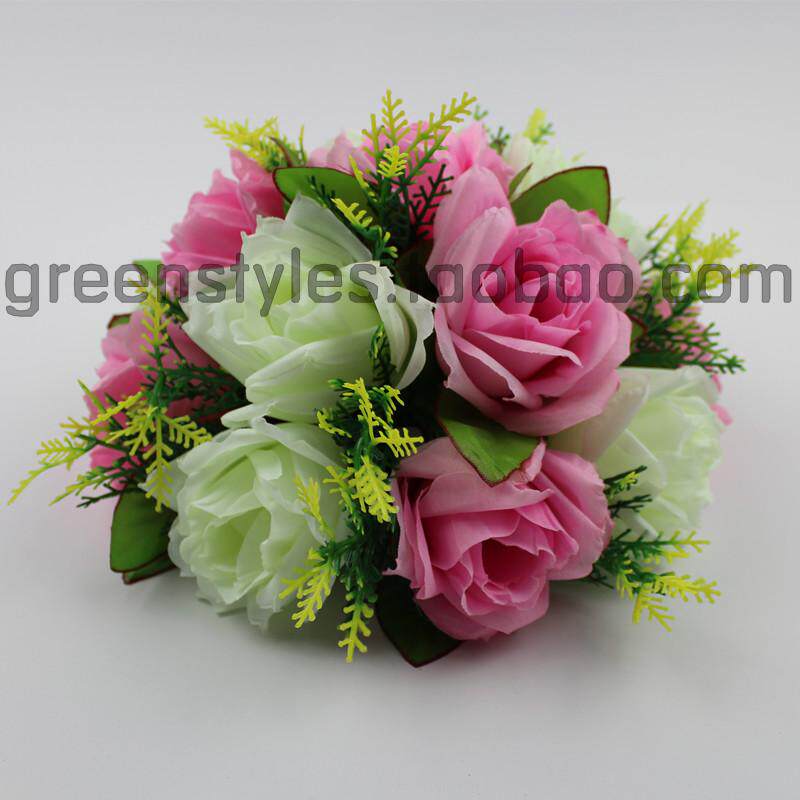 25cm Rose Road Lead Swing Accessories Wedding house Decorative Table Terrace Flowers High Imitation Large Flowers With Green Grass Roman Pillar Decorations