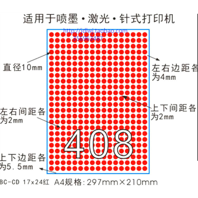 A4 polka dot dumb adhesive printing paper color polka dot label sticker diameter 10MM six colors available