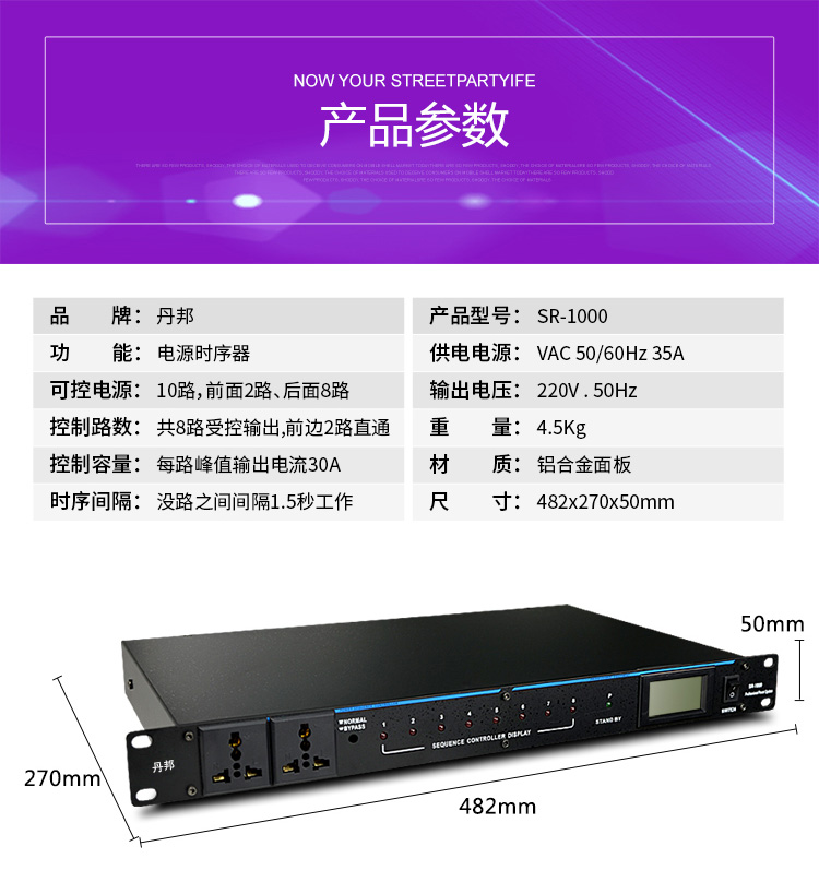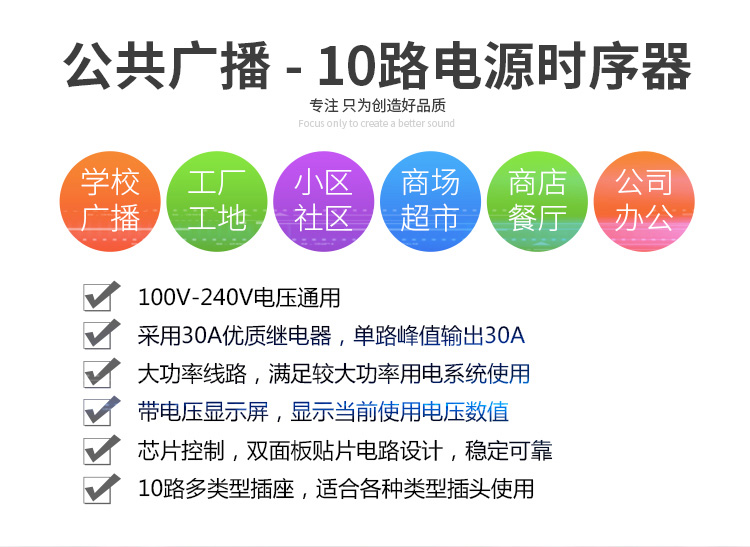 Broadcast system with key 8-way 20A multifunction power supply control power order start of boot-up chronoger